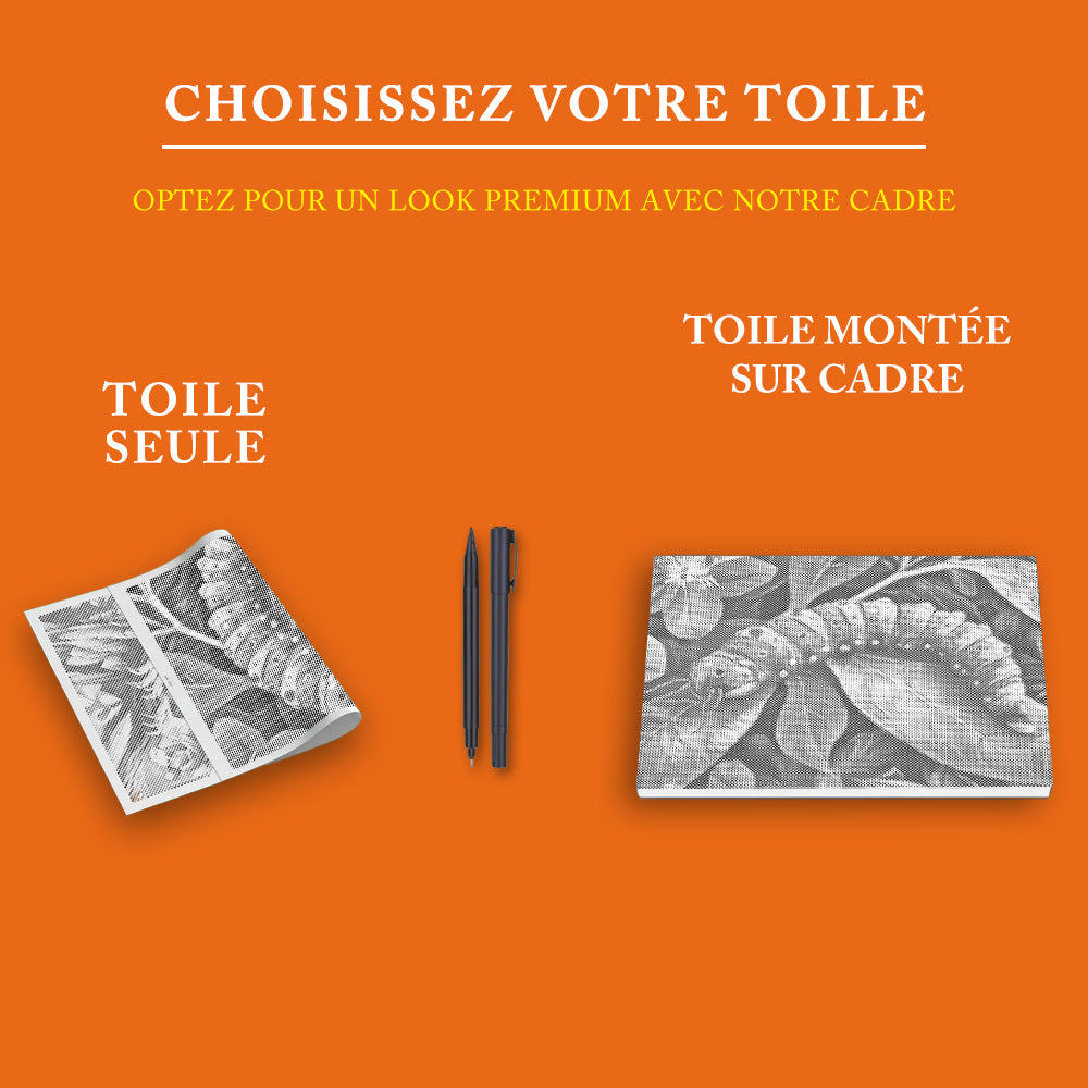 Recevez votre toile pré-tendue et économisez 40 % par rapport aux coûts de encadrement locaux !