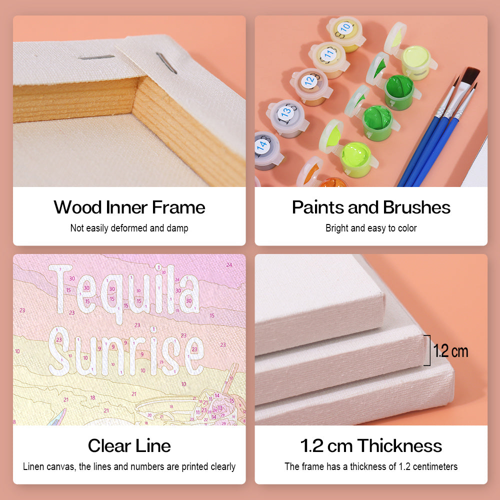 Découvrez tout ce qui est essentiel, soigneusement emballé dans notre kit de peinture par numéros. Avec chaque composant étiqueté et prêt à l'emploi, vous pouvez vous concentrer uniquement sur votre parcours artistique. Des peintures vibrantes aux pinceaux de précision, nous avons veillé à ce que rien ne vous sépare de votre toile. Adapté aussi bien aux débutants qu'aux artistes expérimentés, ce kit offre une expérience de peinture pure et ininterrompue.