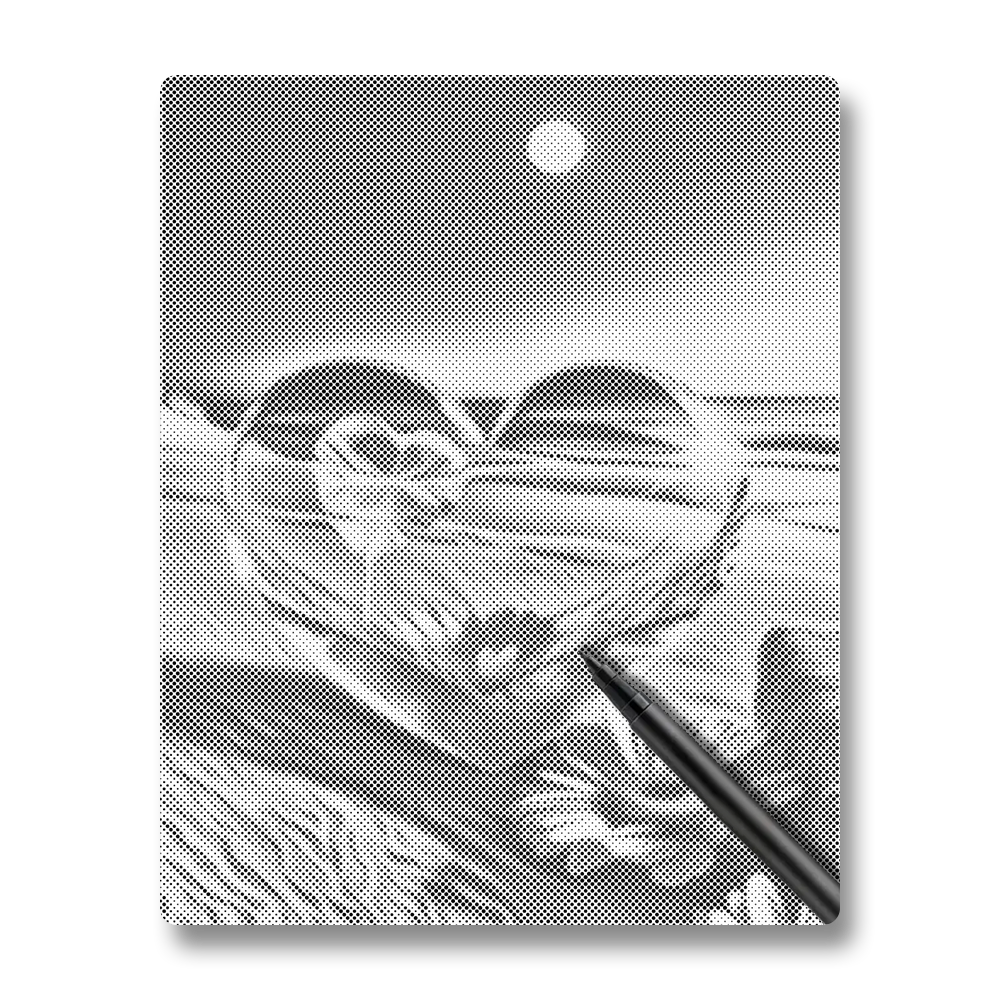 La peinture à points est une technique similaire à la peinture au diamant.Au lieu d’utiliser des strass, vous utilisez des marqueurs spéciaux pour donner vie à votre photo grâce à des points.La toile est imprimée avec des cercles de différentes tailles.En les remplissant, un motif unique apparaît : votre propre peinture à points !Remplissez tous les cercles et regardez votre photo prendre vie et briller.
