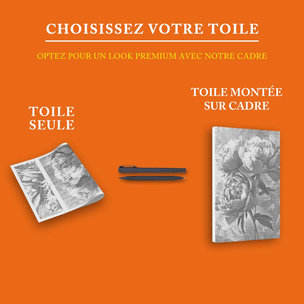 Recevez votre toile pré-tendue et économisez 40 % par rapport aux coûts de encadrement locaux !