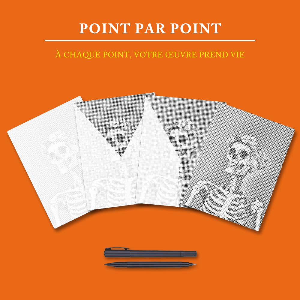 La peinture à points est une technique similaire à la peinture au diamant.Au lieu d’utiliser des strass, vous utilisez des marqueurs spéciaux pour donner vie à votre photo grâce à des points.La toile est imprimée avec des cercles de différentes tailles.En les remplissant, un motif unique apparaît : votre propre peinture à points !Remplissez tous les cercles et regardez votre photo prendre vie et briller.