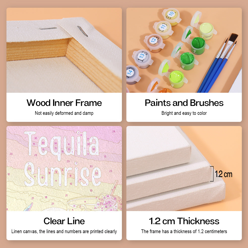 Découvrez tout ce qui est essentiel, soigneusement emballé dans notre kit de peinture par numéros. Avec chaque composant étiqueté et prêt à l'emploi, vous pouvez vous concentrer uniquement sur votre parcours artistique. Des peintures vibrantes aux pinceaux de précision, nous avons veillé à ce que rien ne vous sépare de votre toile. Adapté aussi bien aux débutants qu'aux artistes expérimentés, ce kit offre une expérience de peinture pure et ininterrompue.