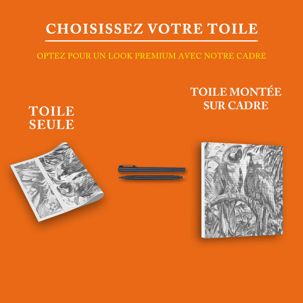 Recevez votre toile pré-tendue et économisez 40 % par rapport aux coûts de encadrement locaux !